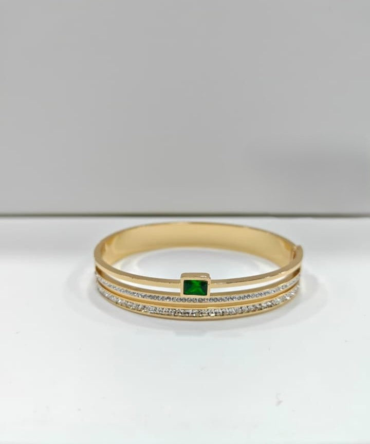 Elegant Emerald Green Stone Gold-Plated Bracelet for Women & Girls