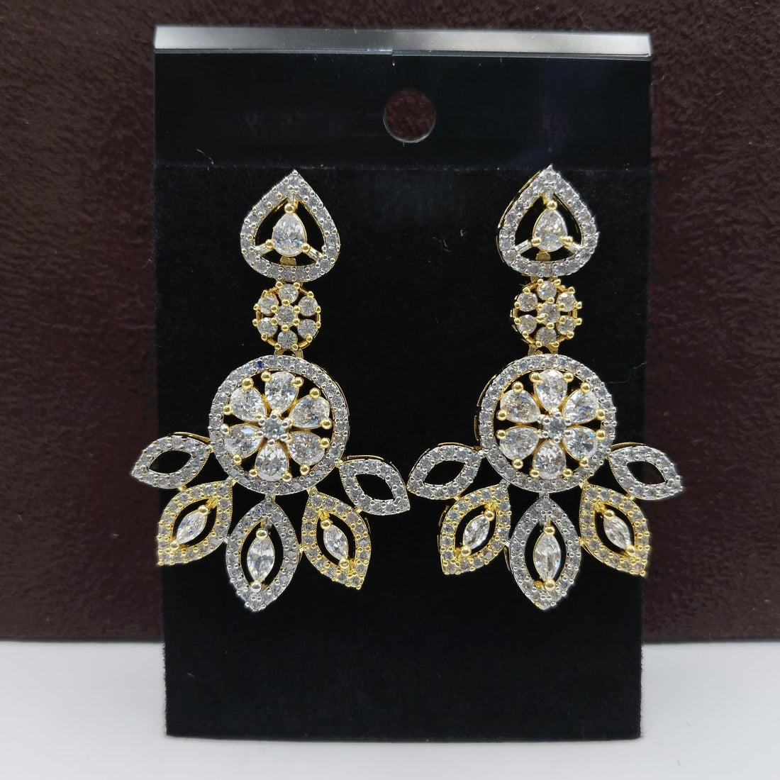 Luxury American Diamond Gold & Silver Plated Floral Dangler Earrings for Women & Girls – Elegant Party, Wedding & Festive Wear Jewelry