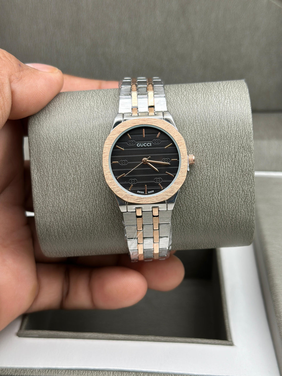 Men’s Luxury Two-Tone Steel Analog Watch – Black Dial (Gucci Style Inspired)