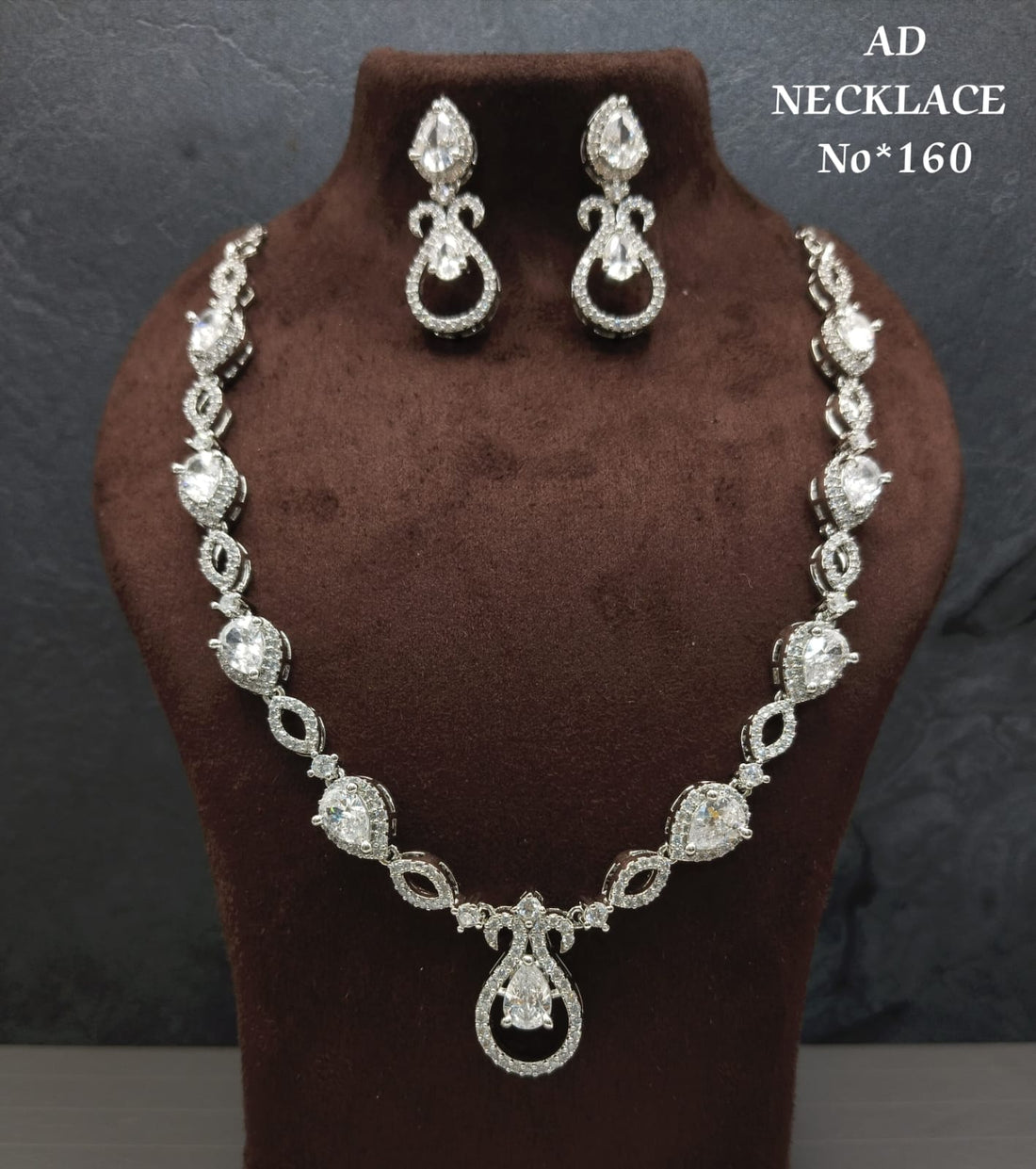 Jewelry Type: AD Necklace Set Model No.: 208 Finish: Premium Silver Rhodium Polish Set Includes:...
