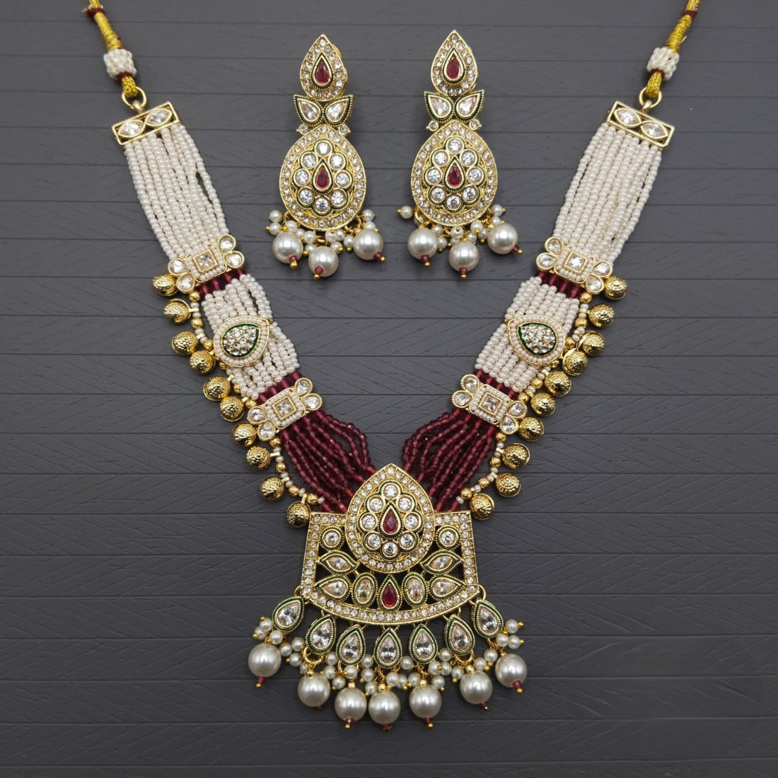 Maroon & Green Kundan Pearl Bridal Necklace Set for Women | Traditional Indian Wedding Jewellery Set