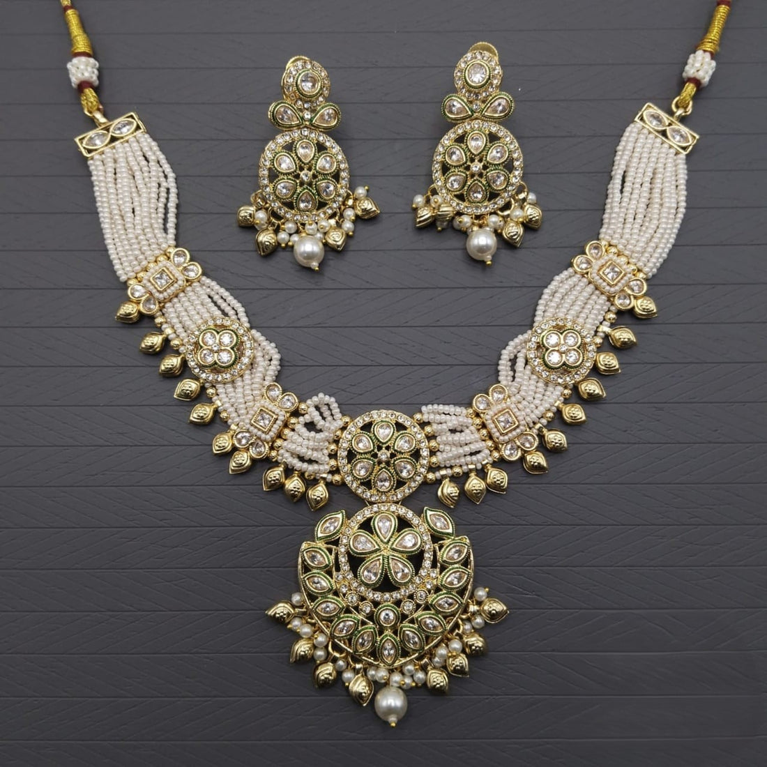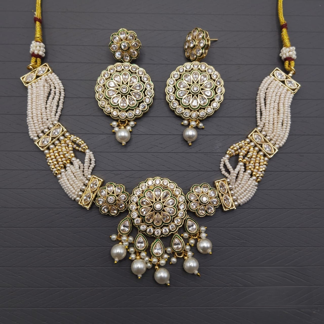 Green Kundan Pearl Bridal Choker Necklace Set for Women | Traditional Wedding Jewellery Set