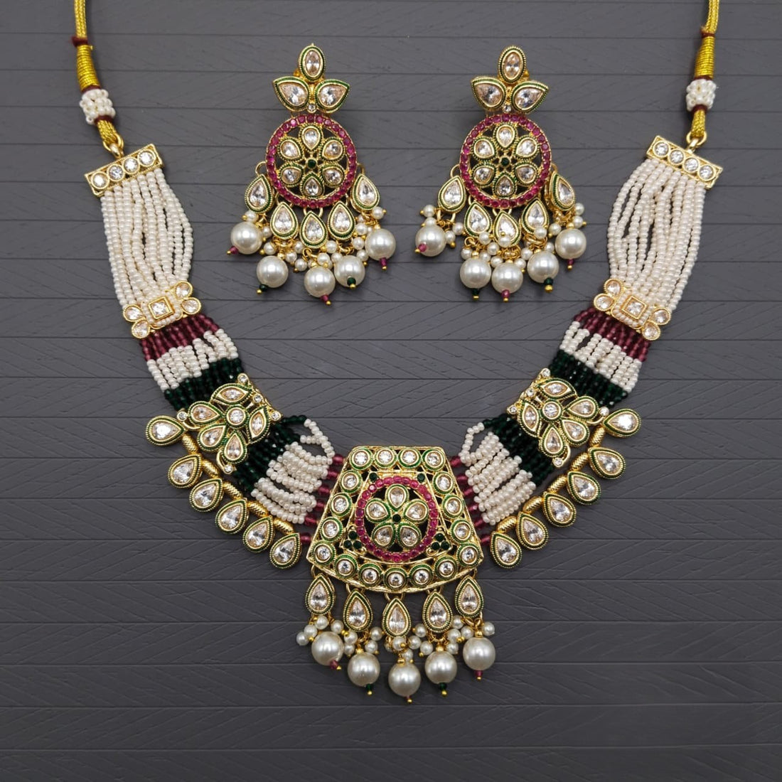 Multicolor Kundan Pearl Bridal Choker Necklace Set for Women | Traditional Wedding Jewellery