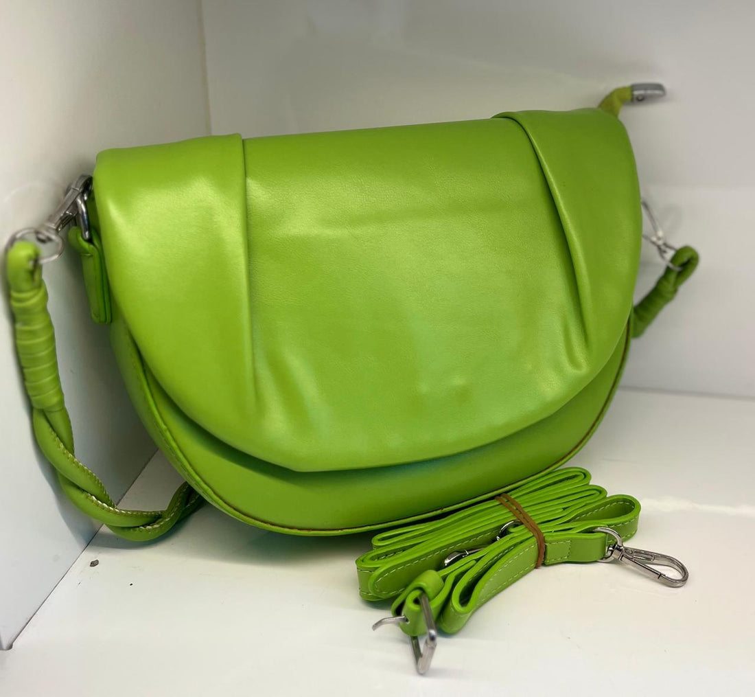 Add a pop of color to your style with this bold lime green crossbody satchel,...