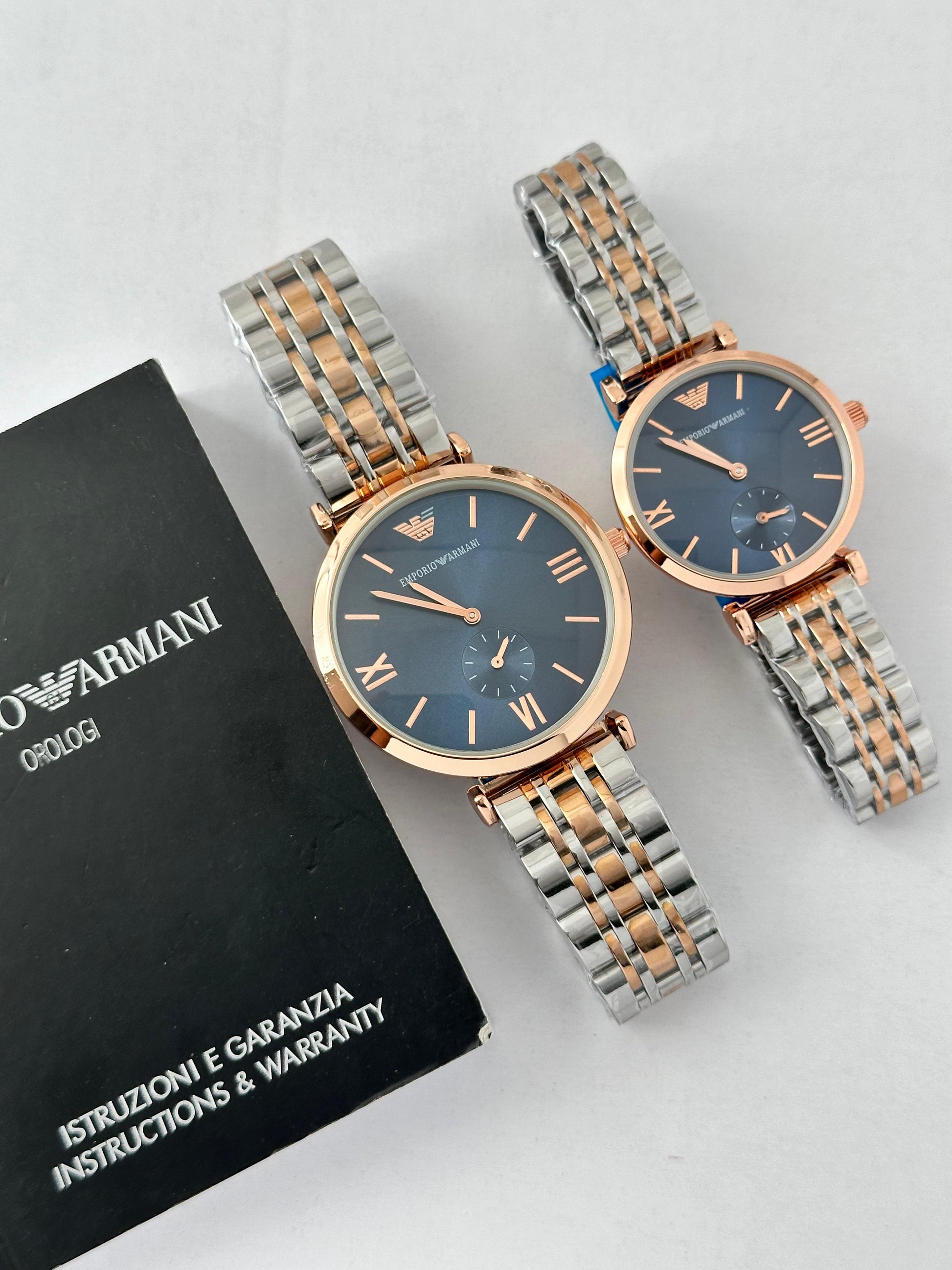 Emporio Armani Blue Dial Rose Gold Couple Watch