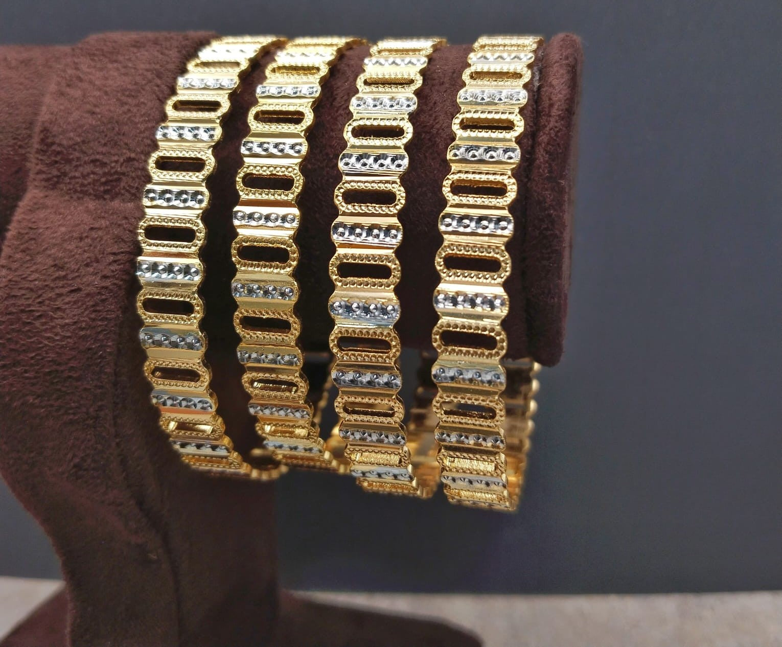 Elegant Gold & Silver Plated Designer Artificial Bangle Set for Women – Traditional Alloy Kada Style (Set of 4)