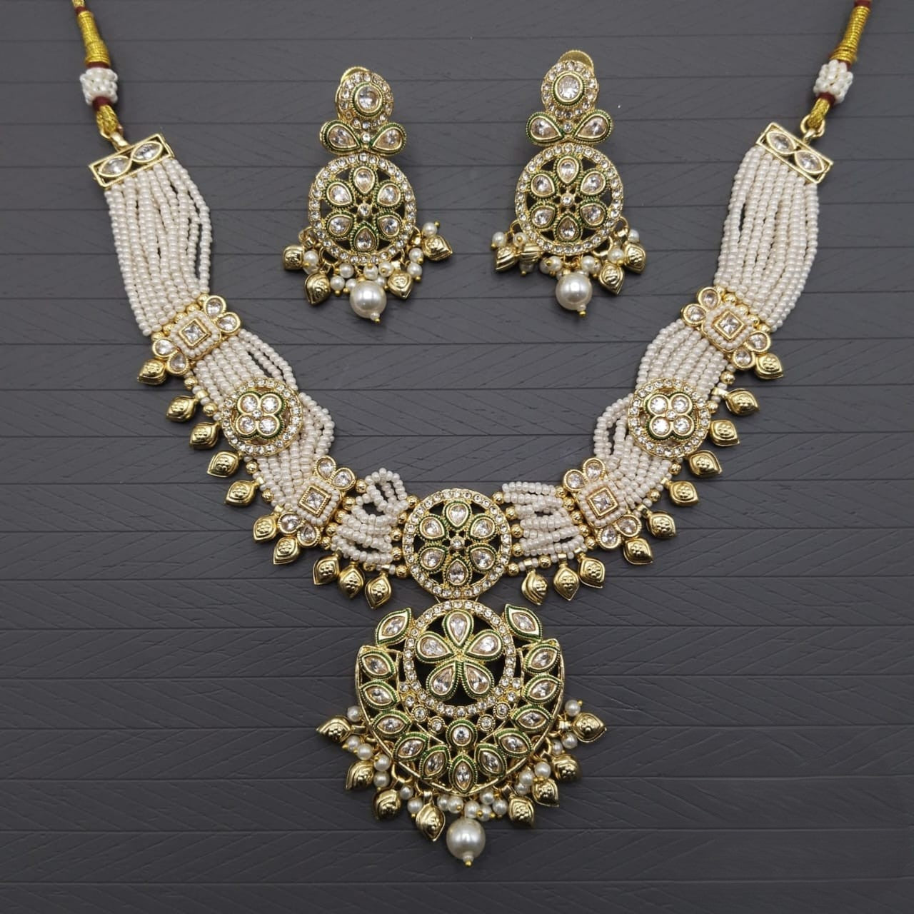 Elegant White Kundan Pearl Bridal Necklace Set for Women | Traditional Indian Wedding Jewellery Set