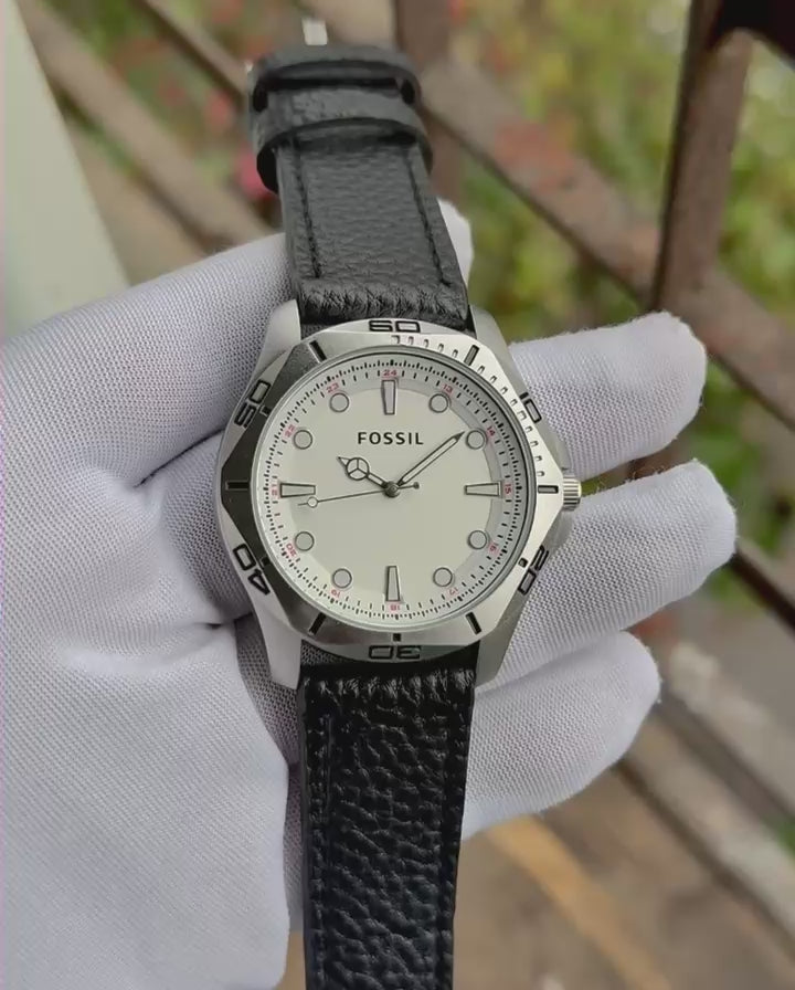 Fossil Blue Dial Analog Men's Wristwatch with Premium Leather Strap