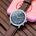 Fossil Men’s Blue Dial Chronograph Watch with Brown Leather Strap | Premium Analog Multifunction Wrist Watch