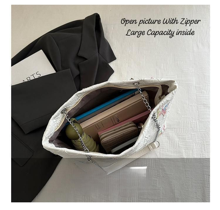 Imported Premium Quality Butterfly Embroidered Tote Bag for Women | Black Stylish Shoulder Bag | Trendy Chain Handle Tote