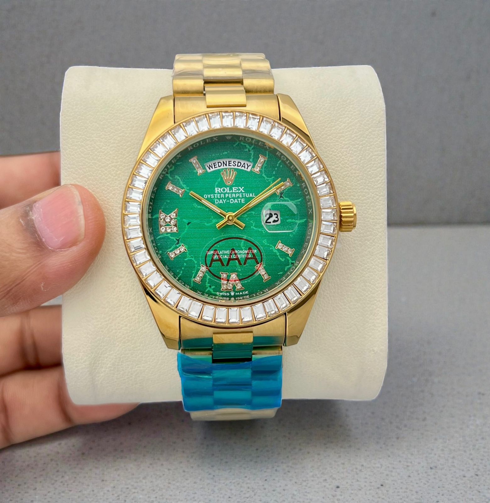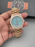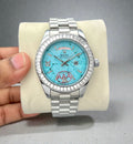 Luxury Day-Date Analog Watch for Men – Turquoise Dial with Crystal Bezel (Inspired Design)
