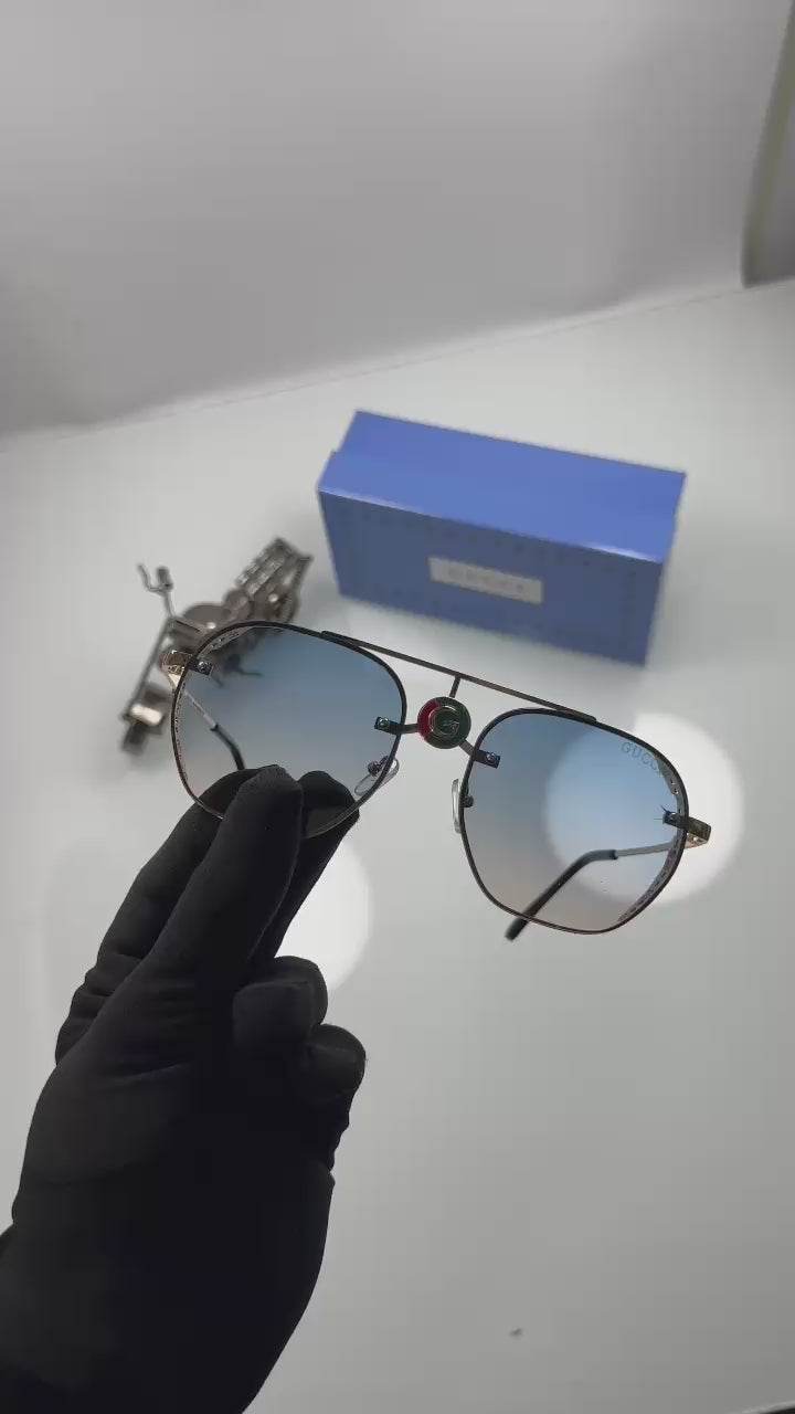 Luxury GUCCI Style Sunglasses for Men | Black Metal Frame | Grey UV Protection Lenses | Model 5024