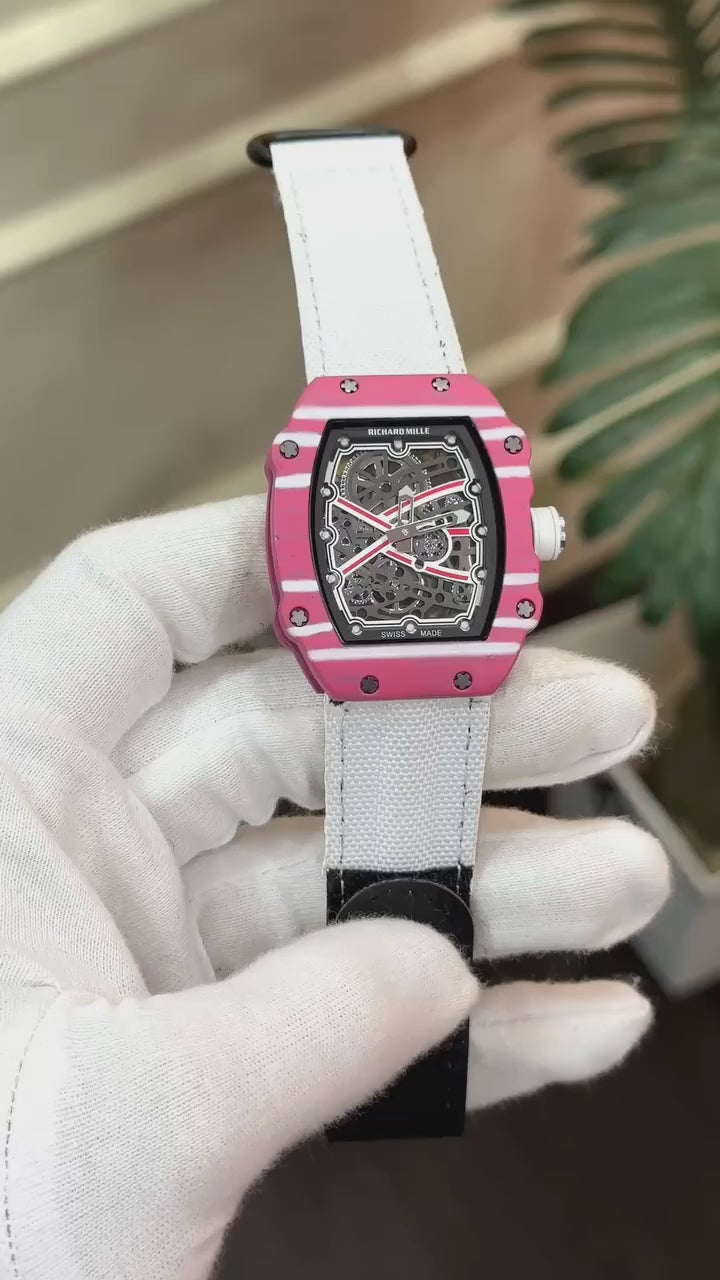 Luxury Richard Mille Style Skeleton Watch for Men | Pink & White Case | Premium Rubber Strap | Imported Designer Watch