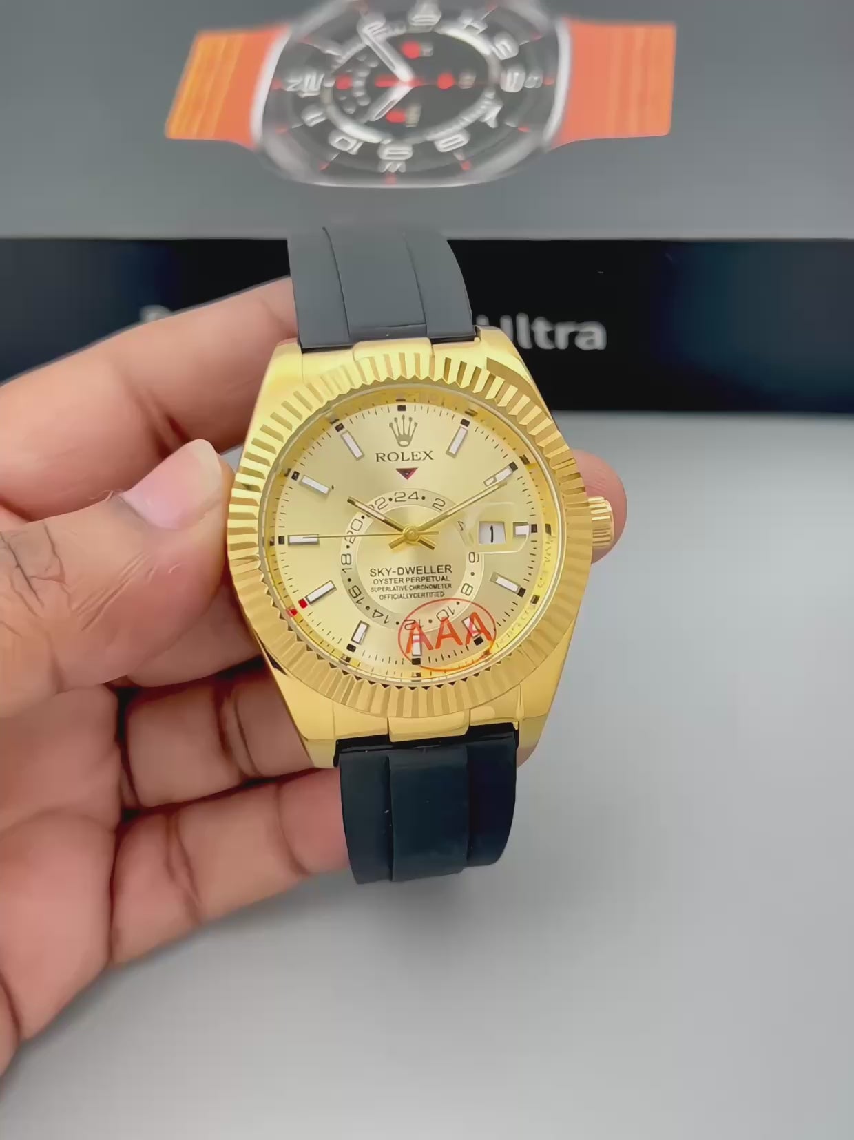Luxury Sky-Dweller Style Analog Watch for Men | Gold Bezel | Rubber Strap