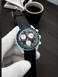 Luxury Speedmaster-Inspired Chronograph Moon Watch for Men – Black Dial with Tachymeter & Silicone Strap