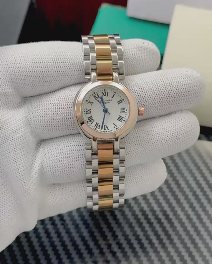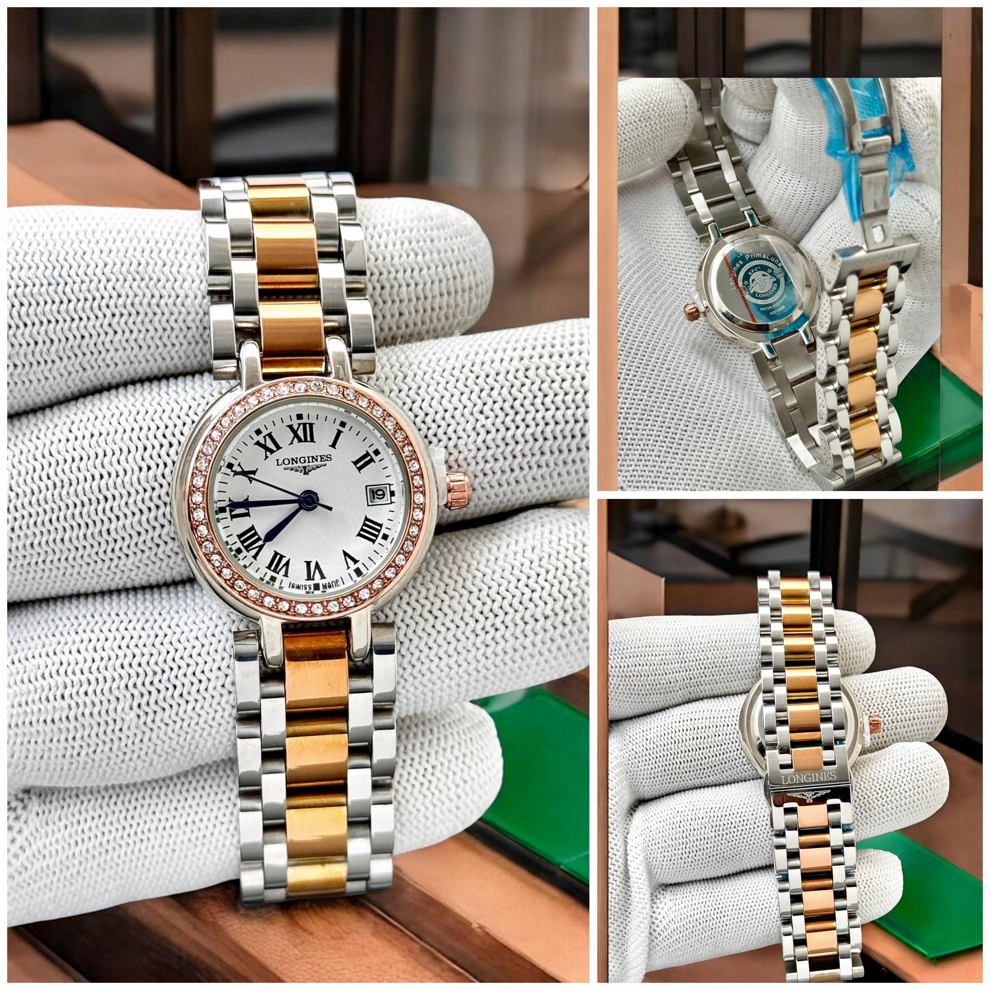 Luxury Women’s Analog Watch – Two Tone Stainless Steel Strap with Crystal Bezel (Classic Roman Dial Inspired)