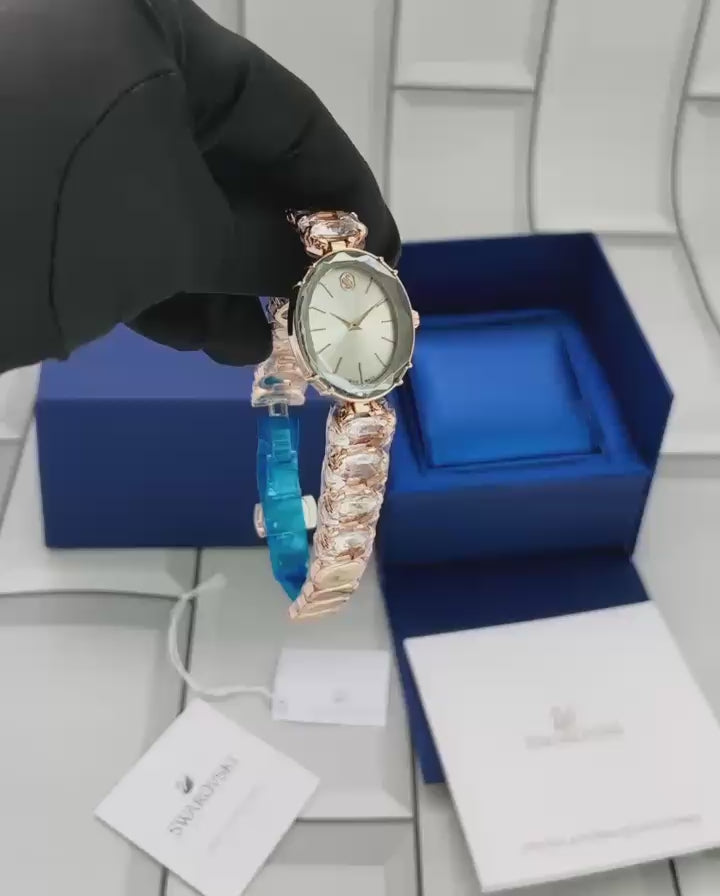 Luxury Women’s Pink Oval Dial Crystal Bracelet Watch – Premium Rose Gold Finish