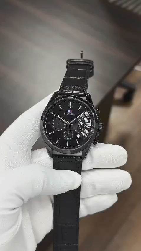 Men’s Black Luxury Analog Chronograph Watch with Leather Strap | Premium Stylish Wrist Watch for Men