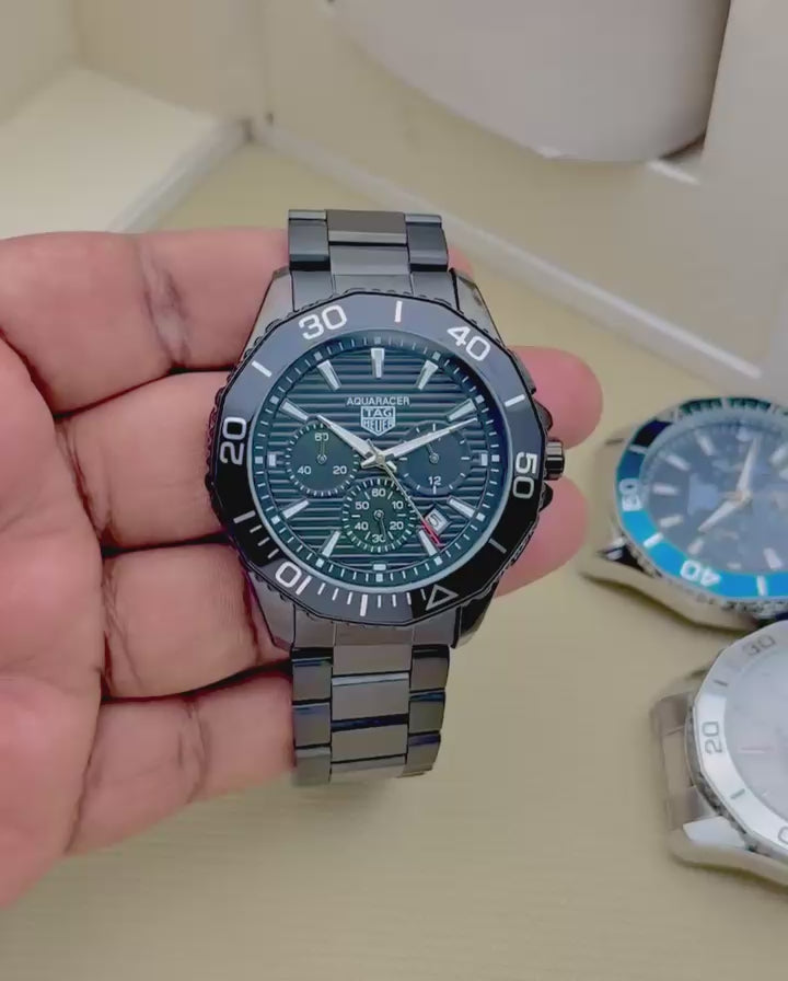 Men’s Luxury Chronograph Watch | Aquaracer Style Blue Dial | Stainless Steel Strap | Date Display