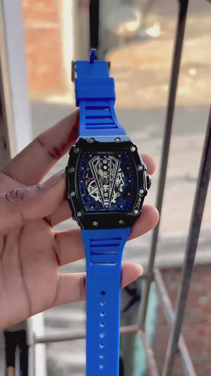 Men’s Luxury Skeleton Watch | Richard Mille Style | Black Rubber Strap | Premium Sports Design