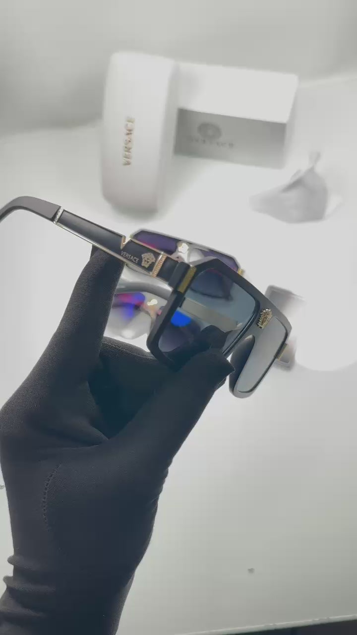 Men’s Luxury Sunglasses – Versace Style | Black & Gold Designer Frame