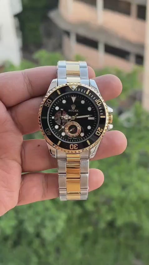 Men’s Luxury Two-Tone Automatic Mechanical Watch – Black Dial & Gold Bezel