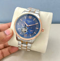 Men’s Open Heart Automatic Style Watch | Black Dial Rose Gold Bezel | Dual Tone Metal Strap | Designer Inspired Luxury Watch