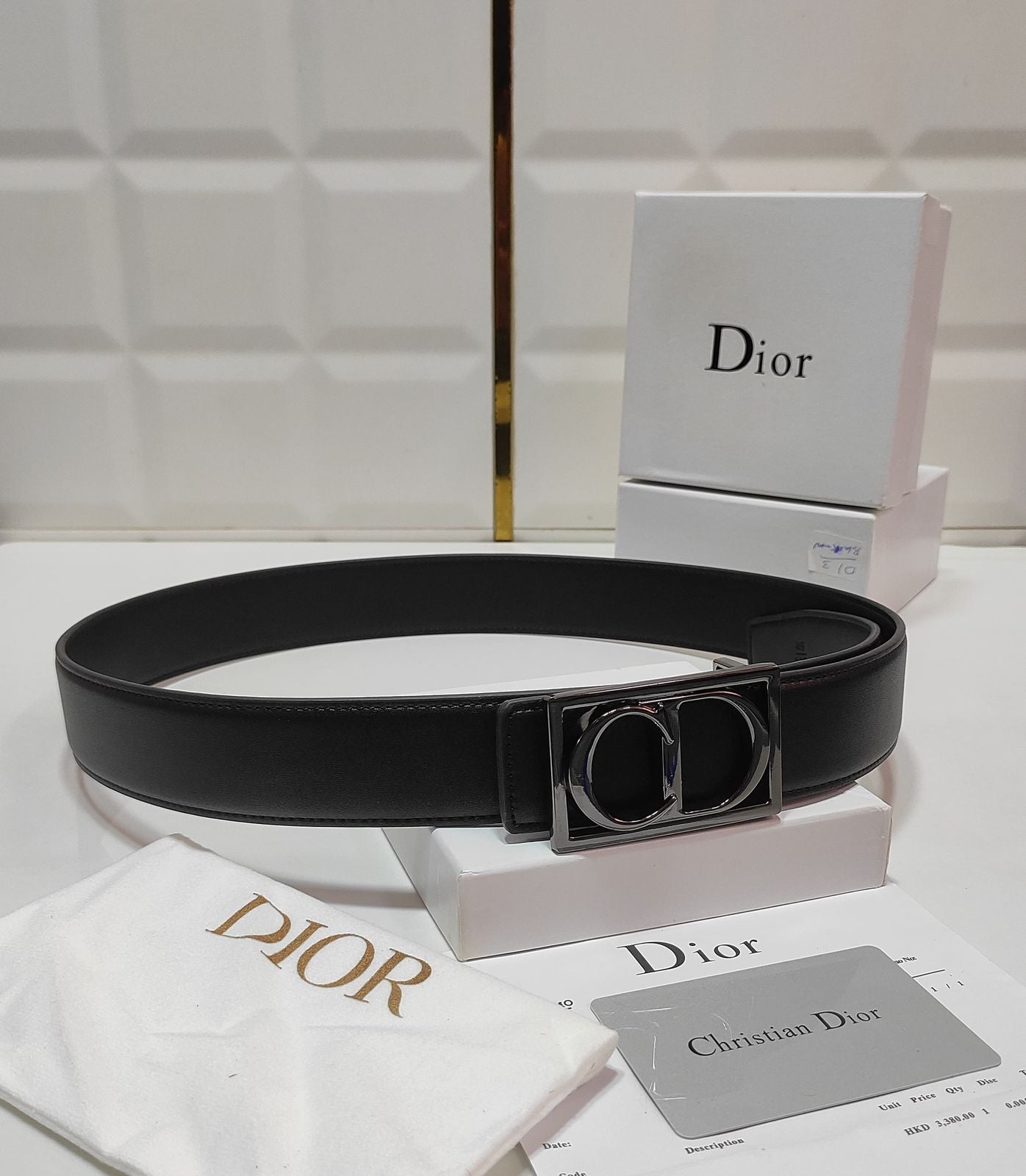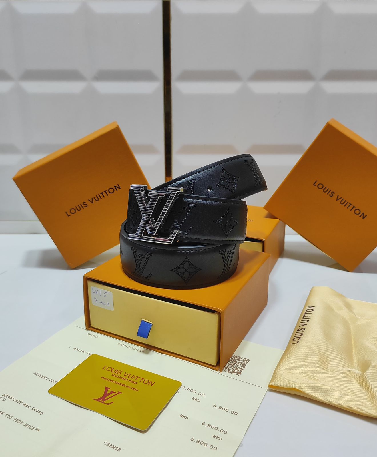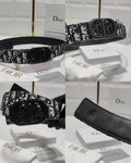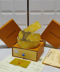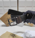 Men’s Premium Designer Black Leather Belt with Stylish Metal LV-Style Buckle (Mix)