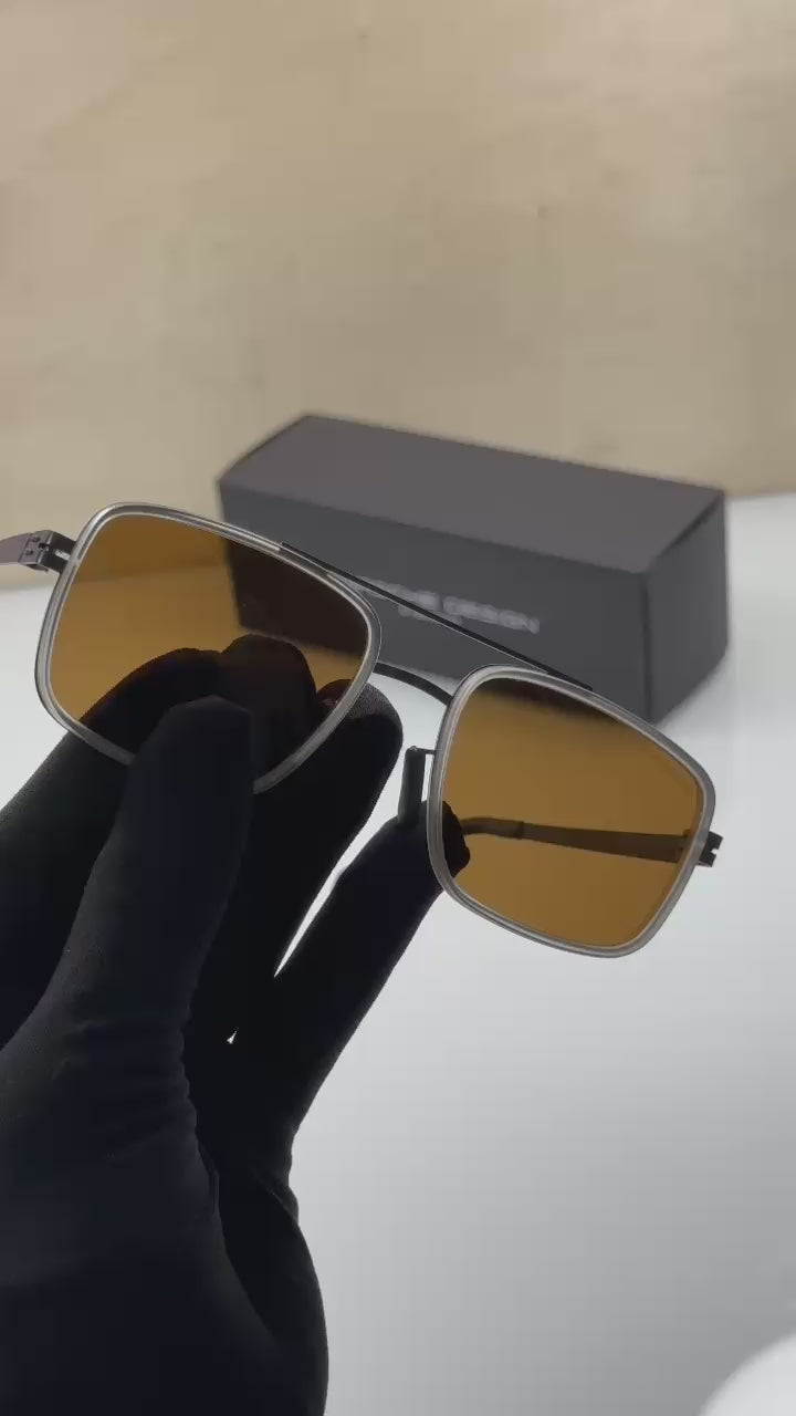 Men’s Premium Square Sunglasses | UV Protection | Luxury Metal Frame Sunglasses (Porsche Design Style)