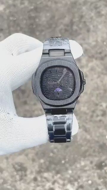 Patek Philippe Nautilus Black Edition Luxury Men’s Watch – Premium 1st Copy | Stainless Steel | Analog