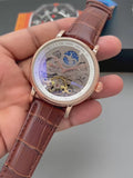 Patek Philippe Skeleton Automatic Mechanical Men’s Watch | Brown Leather Strap | Luxury Transparent Dial Watch