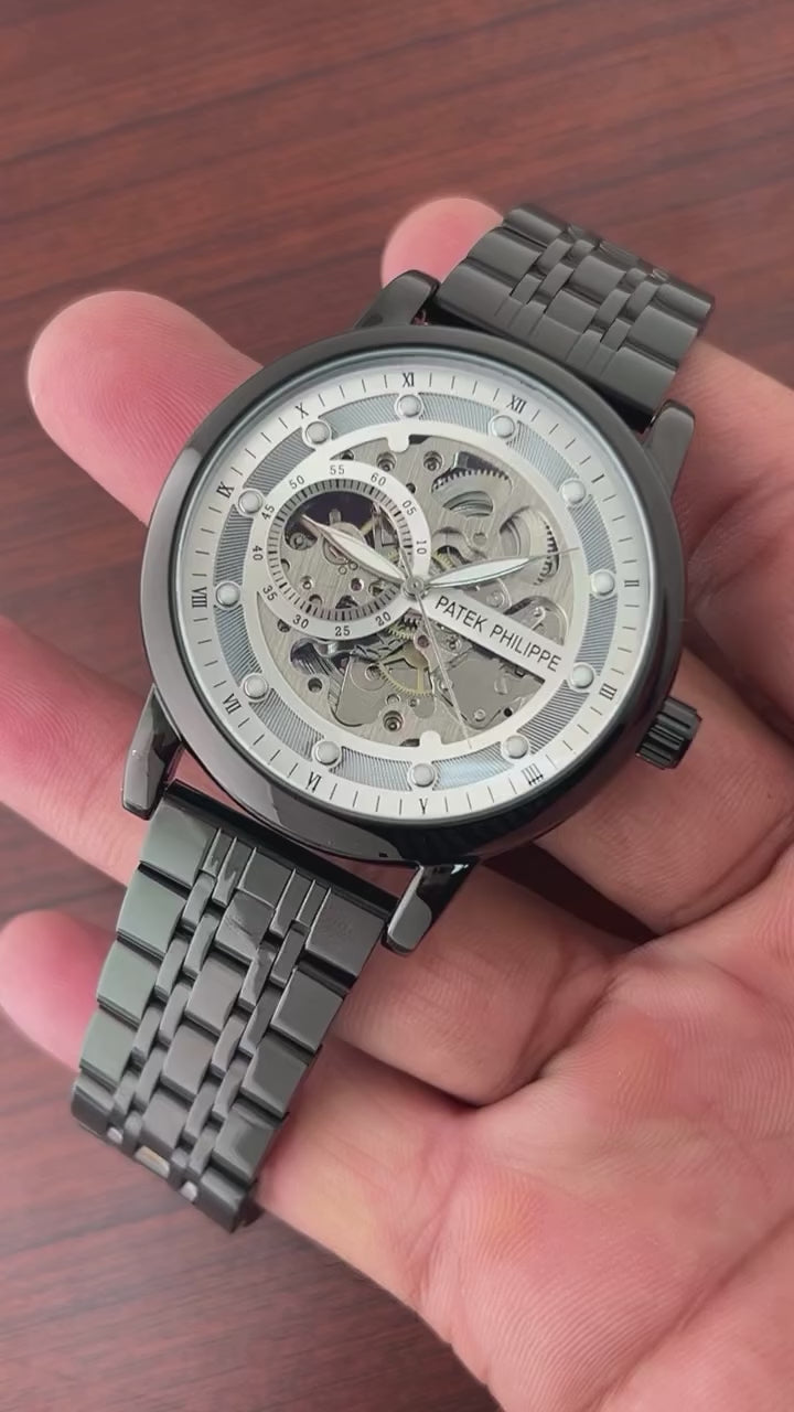 Patek Philippe Style Skeleton Automatic Stainless Steel Luxury Watch – Transparent Mechanical Dial