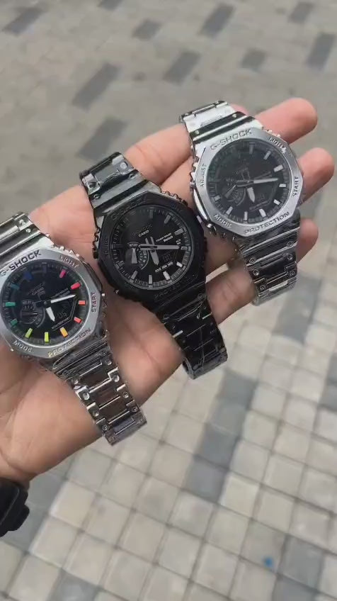 Premium G-Style Metal Chronograph Wristwatch for Men β Analog Digital Luxury Sports Watch (Stainless Steel Strap)