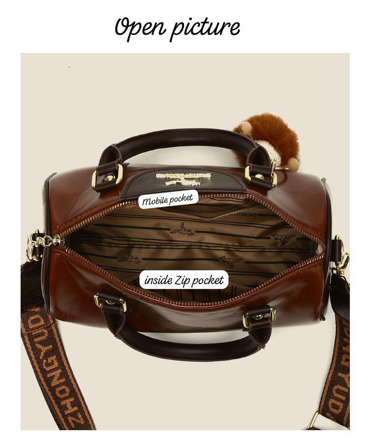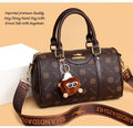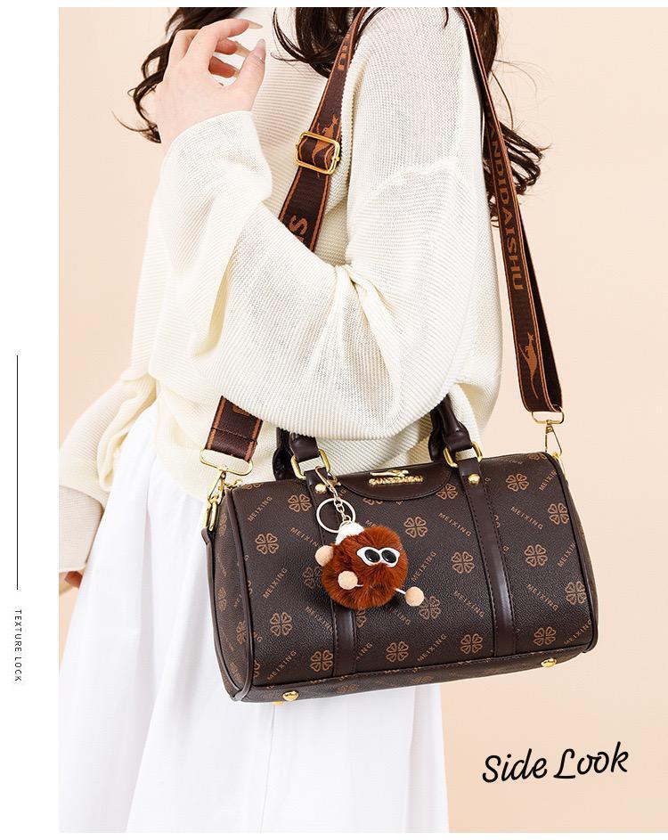 Premium Imported Designer Duffle Style Women’s Handbag with Broad Strap & Cute Keychain – Brown