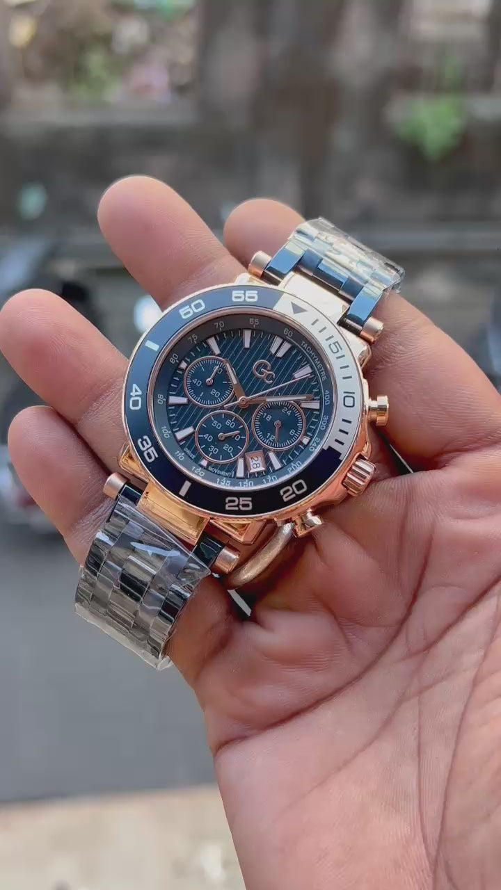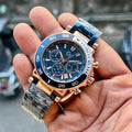 Premium Luxury Chronograph Men’s Watch | Blue Dial & Rose-Gold Case | Dual-Tone Stainless Steel Strap | Analog Date Display
