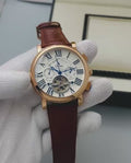 Premium Luxury Rose Gold Classic Analog Watch for Men | Roman Numeral Dial with Brown Leather Strap | Formal & Party Wear Watch