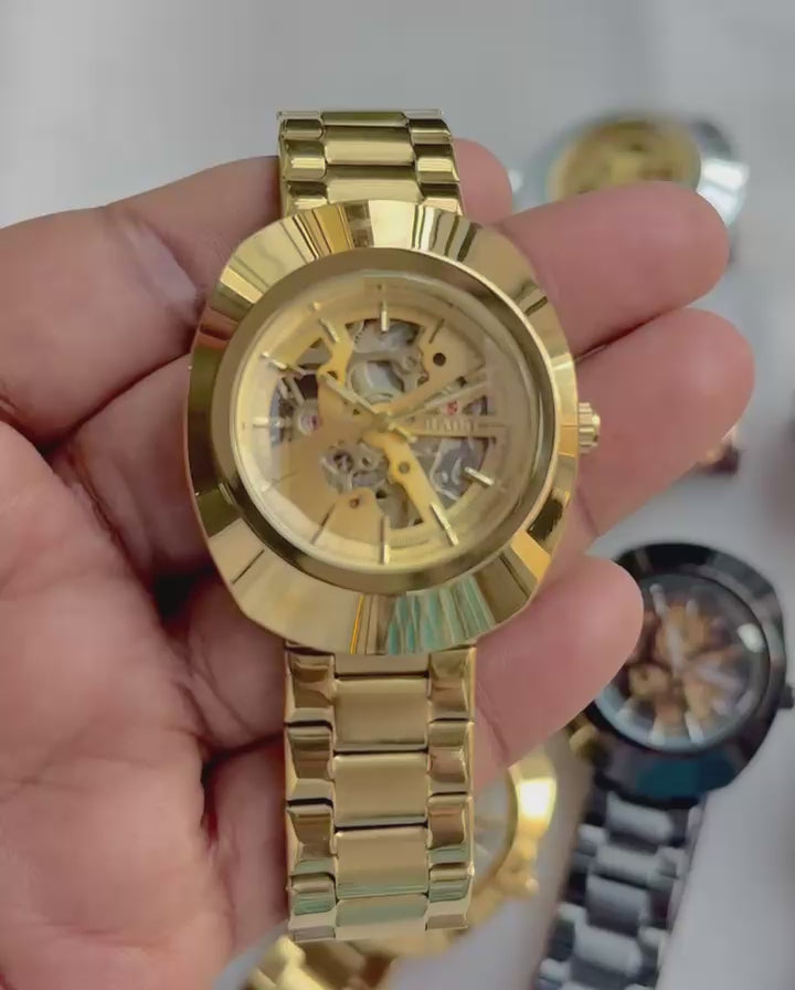 Premium Men’s Skeleton Automatic-Style Stainless Steel Wrist Watch (Rose Gold Finish)