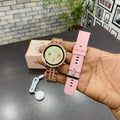 Premium Rose Gold Smartwatch for Women | Full Touch Display | Metal Strap + Extra Silicone Strap | Luxury Crystal Bezel Smart Watch