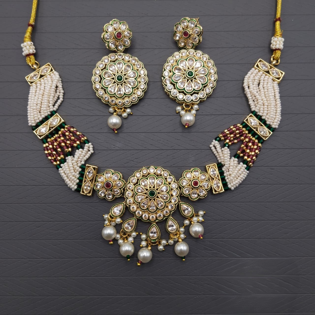 Royal Kundan & Pearl Beaded Bridal Necklace Set for Women | Traditional Indian Wedding Jewellery with Earrings