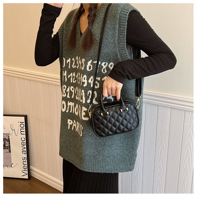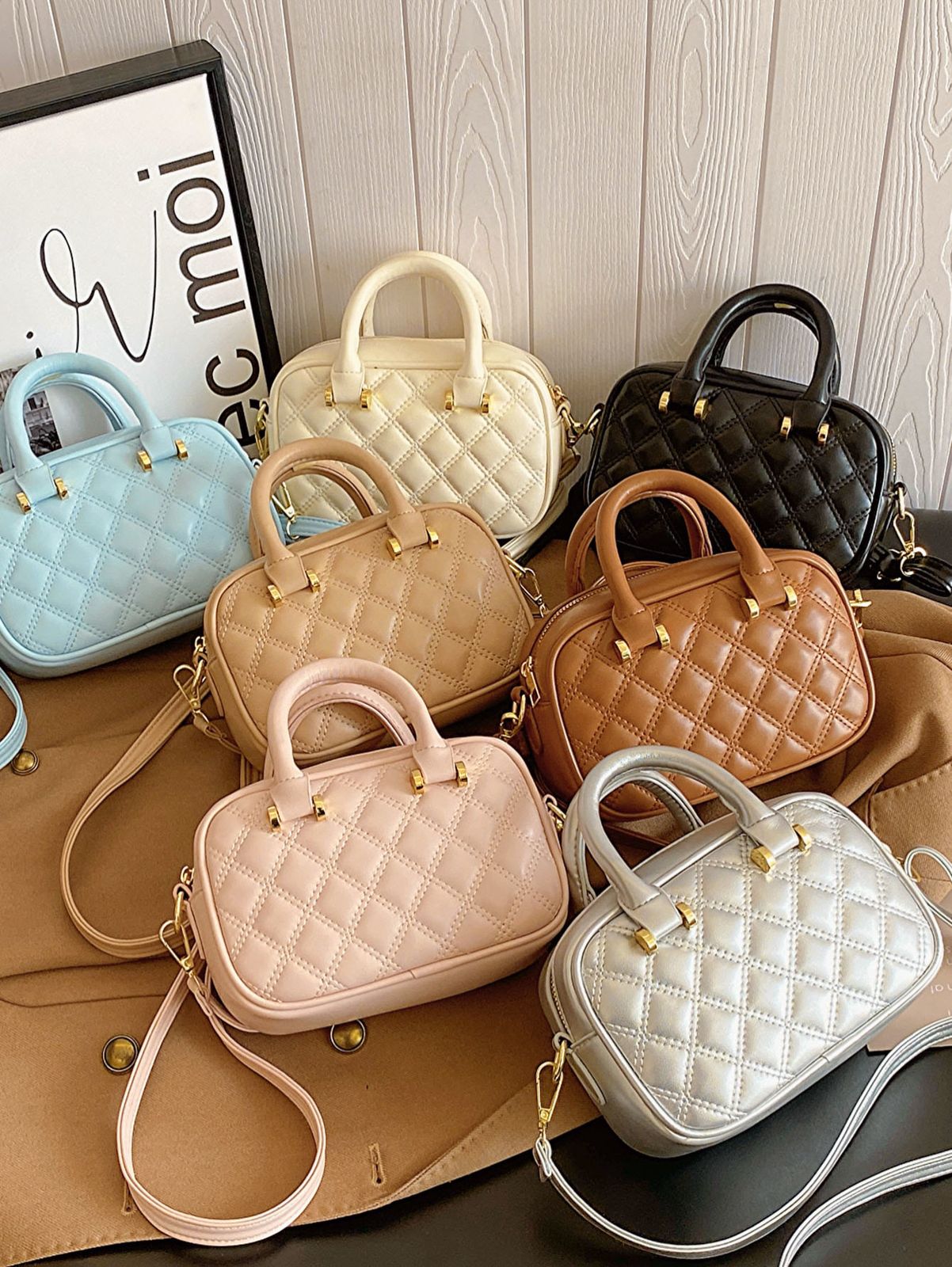 Women’s Black Quilted Mini Handbag with Top Handle & Detachable Sling Strap – Premium PU Leather Shoulder Bag