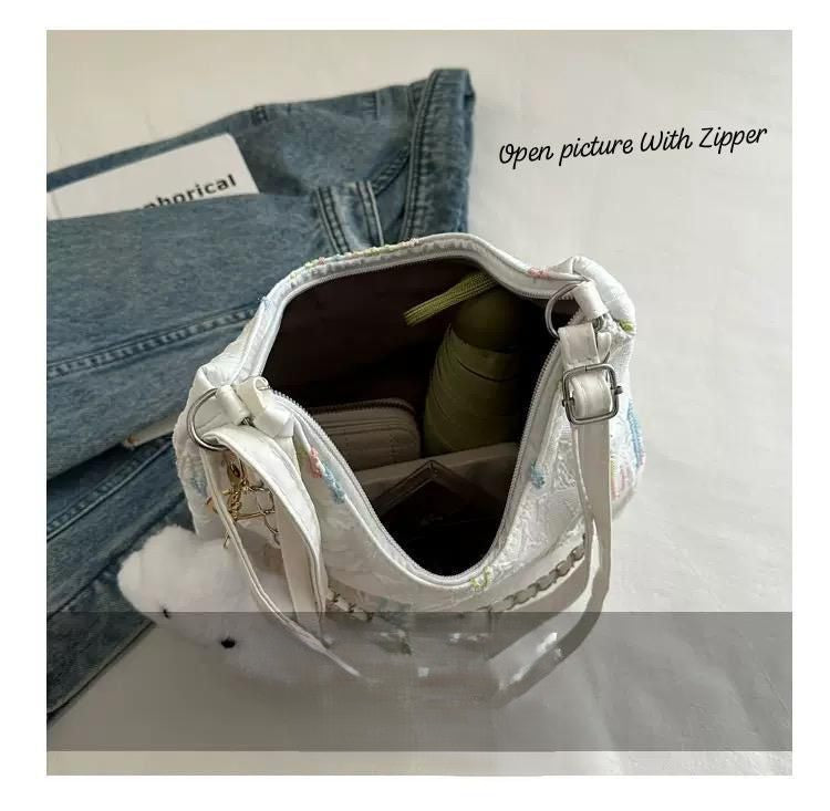Women’s Imported Embroidered Classy Sling Bag with Cute Cloud Keychain – Premium Quality Shoulder Bag