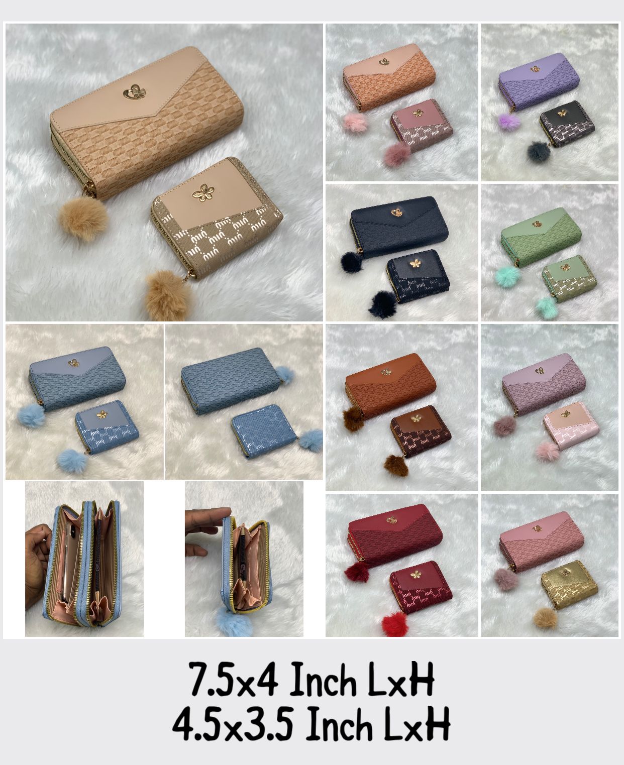 Women’s Premium Black Wallet Combo Set (Long Wallet + Small Zip Wallet) with Golden Detailing & Fur Pom-Pom – Stylish & Elegant