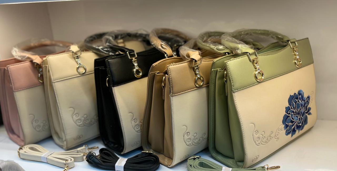 Women’s Premium Embroidered Handbag – Black & Cream Floral Design with Detachable Shoulder Strap