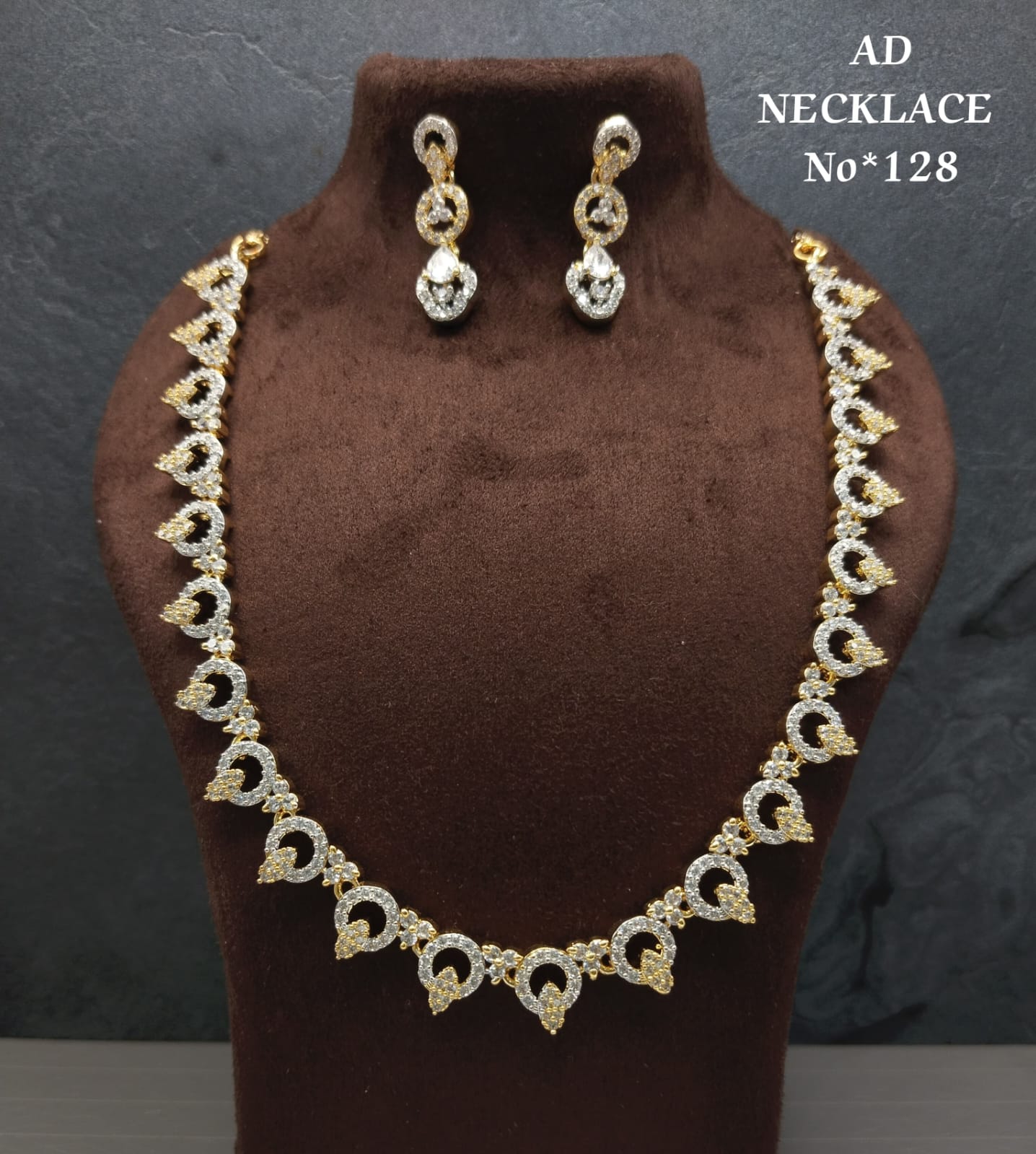 Premium AD Necklace Set for Women | Gold Finish American Diamond Jewelry | Party & Wedding Wear (Model 128)